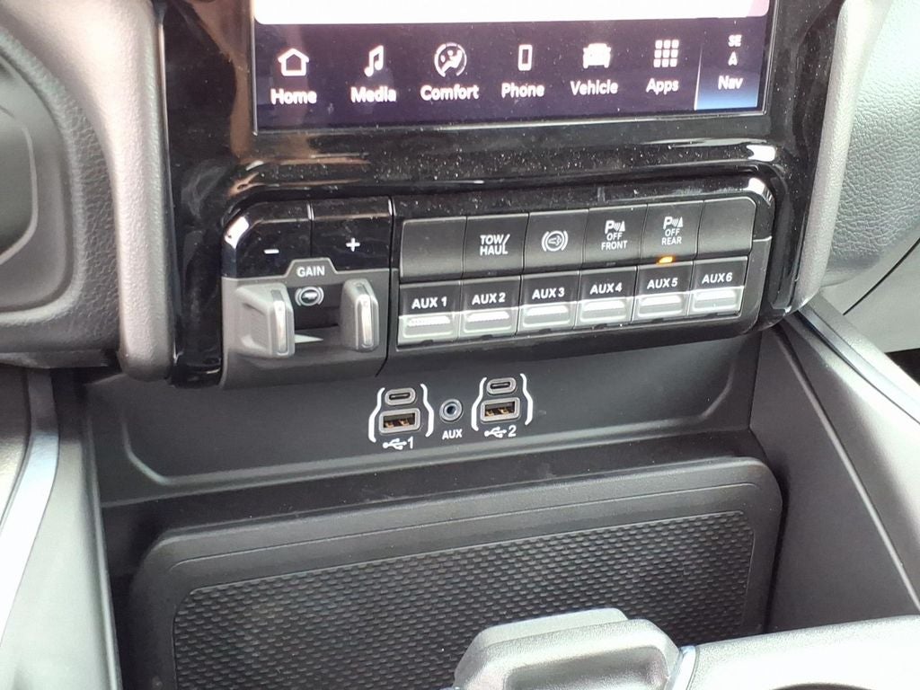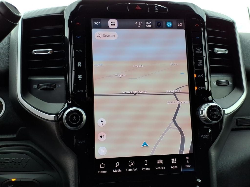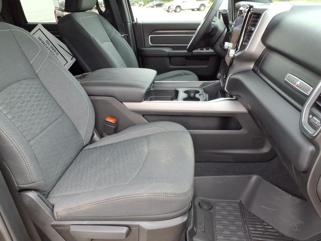Quick Order Package 24Y Lone Star: Lone Star Badge. Big Horn Level 1 Plus Equipment Group: Google Android Auto; SiriusXM Radio Service; For Details Visit DriveUconnect.com; For More Info. Call 800-643-2112; Integrated Voice Command with Bluetooth®; Emergency Vehicle Alert System (EVAS); Lone Star Instrument Panel Badge; 12" Touchscreen Display; Glove Box Lamp; Auto Power-Folding Mirrors; Footwell Courtesy Lamp; Mirror Running Lights; MOPAR Deployable Bed Step; Alexa Built-In; Apple CarPlay; Power-Adjustable Convex Aux Mirrors; Forward and Reverse Utility Lights; Locking Lower Glove Box; Remote Start System; 9 Alpine Speakers with Subwoofer; Disassociated Touchscreen Display; Dual Glove Boxes; 2nd Row in Floor Storage Bins; Rear View Auto Dim Mirror; Rear Dome with On/off Switch Lamp; LED Bed Lighting; Connectivity - US/Canada; GPS Navigation; 4G LTE Wi-Fi Hot Spot; GPS Antenna Input; Exterior Mirrors with Heating Element; SiriusXM with 360L; Global Telematics Box Module; Connected Travel and Traffic Services; Foam Bottle Insert (door Trim Panel); Black Exterior Mirrors; Off-Road Information Pages; Selectable Tire Fill Alert; Trailer Tow Pages; HD Radio; Uconnect 5 Navigation with 12.0" Display Radio; Power Heated Fold Telescopic Mirrors; Exterior Mirrors with Supplemental Signals; Steering Wheel Mounted Audio Controls; Exterior Mirrors Courtesy Lamps; Air Conditioning ATC with Dual Zone Control; MOPAR Spray in Bedliner; Power Adjust Mirrors; Luxury Steering Wheel; Power Telescoping Mirrors. Dual Rear Wheels: Clearance Lamps; 17" Steel Spare Wheel; Box and Rear Fender Clearance Lamps; Center Hub; 6000# Front Axle with Hub Extension; 17" X 6.0" Polished Aluminum Wheels; Nexen Brand Tires; 14. 000 Lb GVWR; Rear Wheelhouse Liners. Quick Order Package 2UY Lone Star: Lone Star Badge. LT235/80R17E Off Road Tires. Chrome Flat Cab-Length Side Steps. 5th Wheel/gooseneck Towing Prep Group. Premium Cloth Bucket Seats. 50 Gallon Fuel Tank. Remote Start System. Granite Crystal Met CC. Instrument Panel Mounted Auxiliary Switches. MOPAR Front and Rear Rubber Floor Mats. Rear Wheelhouse Liners. Clearance Lamps. **Equipment listed is based on original vehicle build and subject to change. Please confirm the accuracy of the included equipment by calling the dealer prior to purchase.**