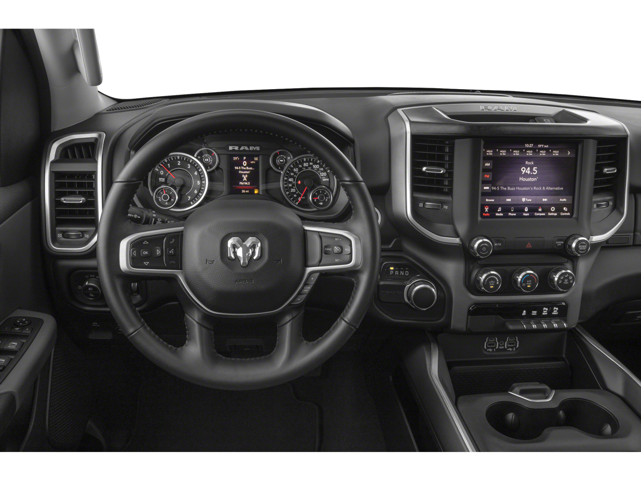 Quick Order Package 25Z Big Horn/Lone Star: Steering Wheel Mounted Audio Controls. Big Horn Level 1 Equipment Group: Uconnect 4 Radio with 8.4" Display; SiriusXM Satellite Radio; Rear Window Defroster; Rear View Auto Dim Mirror; Power Adjustable Pedals; Rear Power Sliding Window; Rear Dome with On/off Switch Lamp; Glove Box Lamp; Power 4-Way Driver Lumbar Adjust; Power 8-Way Driver Seat; Universal Garage Door Opener; Cluster 3.5" TFT Color Display; Foam Bottle Insert (door Trim Panel); Single Disc Remote CD Player; Class IV Receiver Hitch; Power Heated Fold Away Mirrors; Sun Visors with Illuminated Vanity Mirrors; Big Horn Instrument Panel Badge. Lone Star Package: Lone Star Badge. Sport Appearance Package: 275/55R20 OWL All Season Tires; Deluxe Cloth Bucket Seats; Exterior Mirrors with Supplemental Signals; Power Heated Fold-Away Mirrors; Body Color Door Handles; Exterior Mirrors Courtesy Lamps; Auto Dim Exterior Driver Mirror; Exterior Mirrors with Memory; Grille B/color Outline 1 Texture 2; Black Interior Accents; Power-Folding Mirrors; Body Color Front Bumper; Body Color Rear Bumper with Step Pads. 20" X 9" Aluminum Chrome Clad Wheels. Wheel to Wheel Side Steps. Anti-Spin Differential Rear Axle. Deluxe Cloth Bucket Seats. Single Disc Remote CD Player. Trailer Brake Control. Remote Start System. Granite Crystal Met CC. 3.92 Rear Axle Ratio. **Equipment listed is based on original vehicle build and subject to change. Please confirm the accuracy of the included equipment by calling the dealer prior to purchase.**
